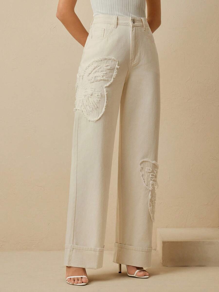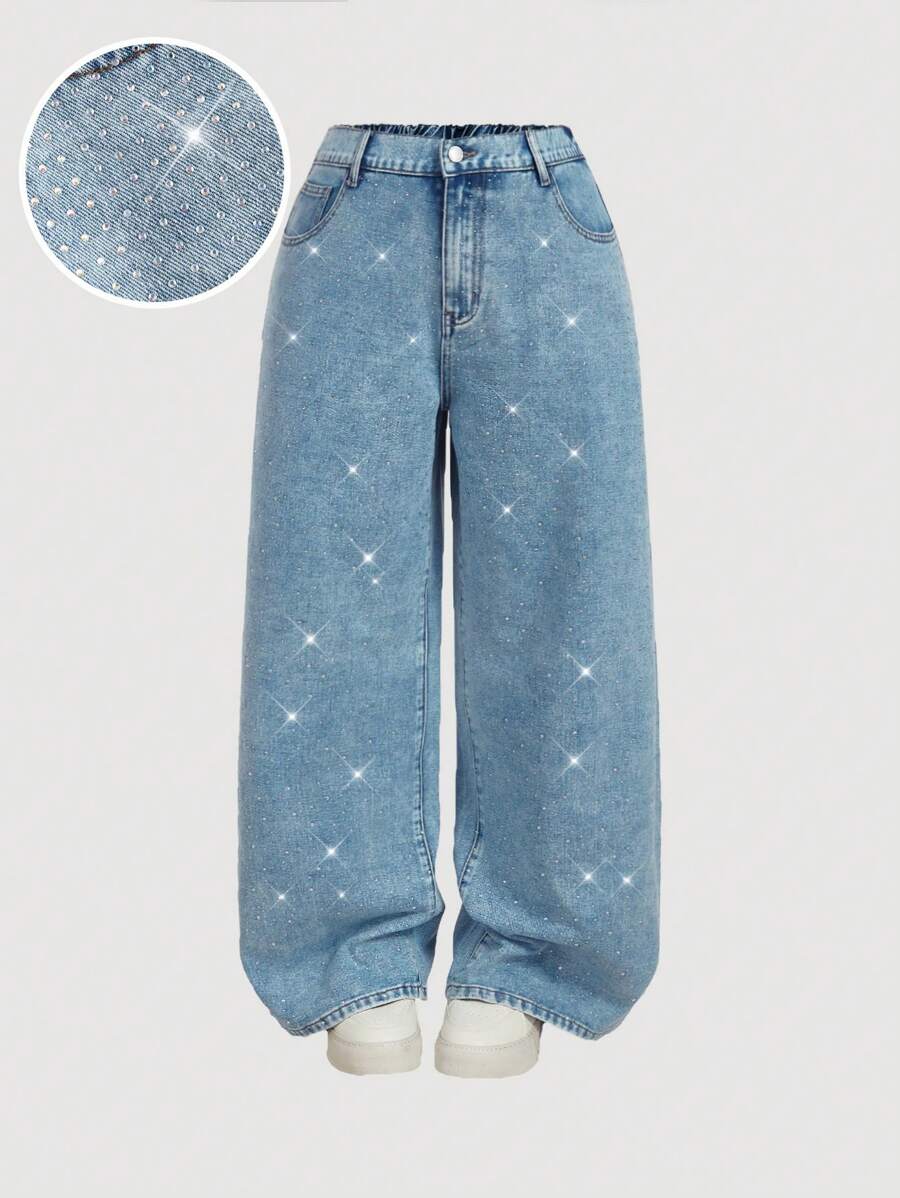 Anewsta جينز نسائي بقصة فضفاضة وأرجل واسعة، ذو تطريز فاخر، مناسب للمناسبات الأنيقة والمهرجانات والأزياء اليومية، مزين بالراين ستون