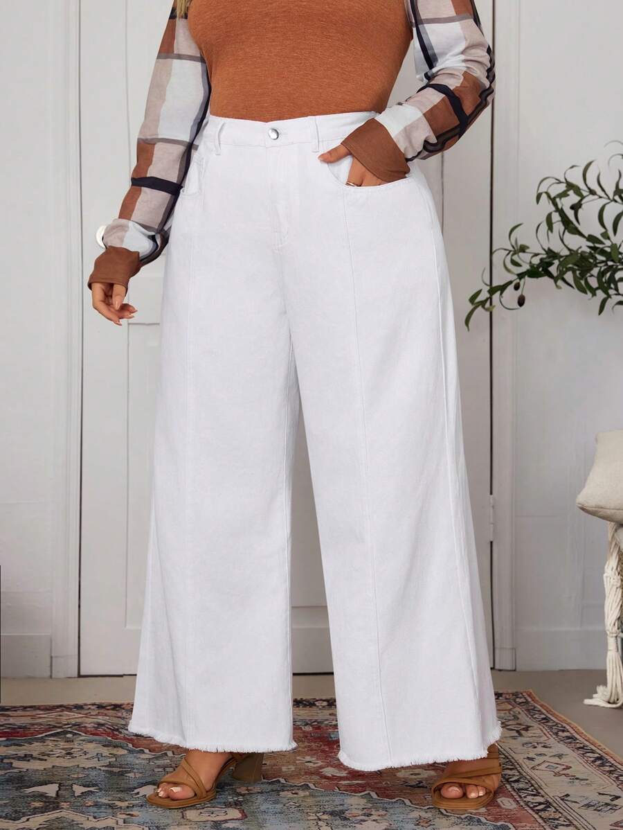 SHEIN ICON سراويل جينز ذات ساق واسعة مرنة للمرأة بحجم كبير، مناسبة لجميع المواسم