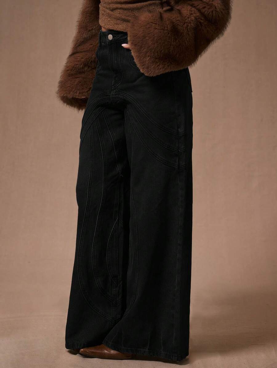 KIZN بنطلون جينز واسع الساق مرتفع الخصر بطراز كلاسيكي، مزين بالكريستال، بتصميم فضفاض مريح مناسب للخروجات والحفلات