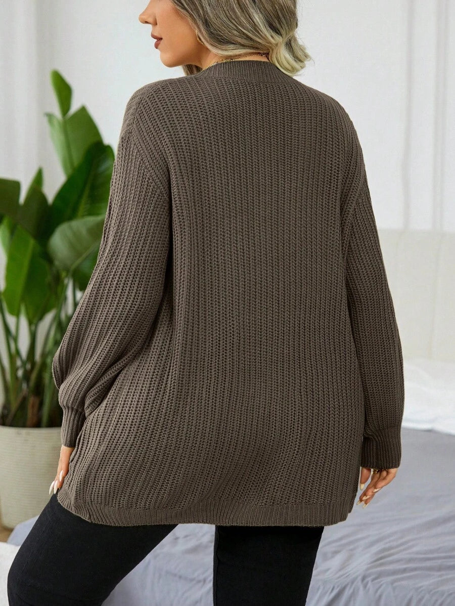 Easura كنزة صوفية فضفاضة بلون أحادي للنساء ذوات الحجم الكبير
