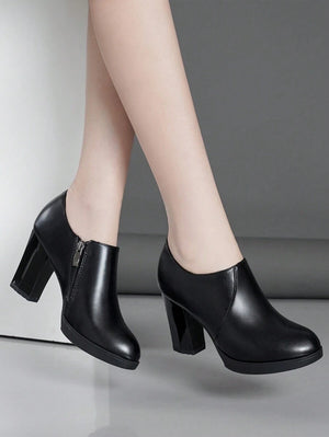 بوت كاحل نسائية لخريف/شتاء 2025، بوت قصيرة، كعب عالي، كعب مربع برؤوس مستديرة، أنيقة ومريحة، بوت مكتبية/للعمل، بوت ذات فتحة عميقة، بوت رقص ذات منصة مقاومة للماء، بوت طراز تشونغسام للمنصة
