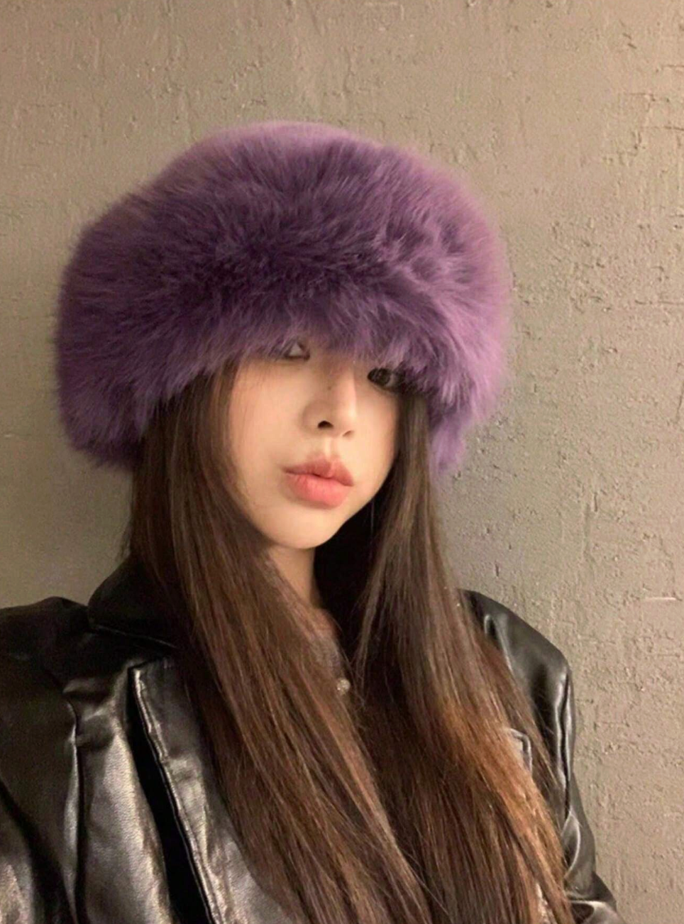 قبعة شتوية فرائية للنساء، بتصميم أوروبي وكوري دافئ، لون أحادي جذاب وعملي، تصميم أكثر سمكًا لملابس الشتاء