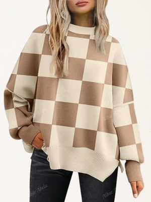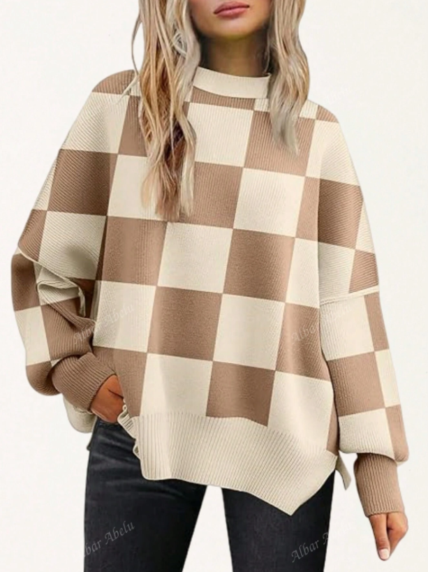 كنزة صوفية صوفية فضفاضة بياقة طاقم وأكمام منسدلة للنساء ذوات الحجم الكبير، خريف/شتاء