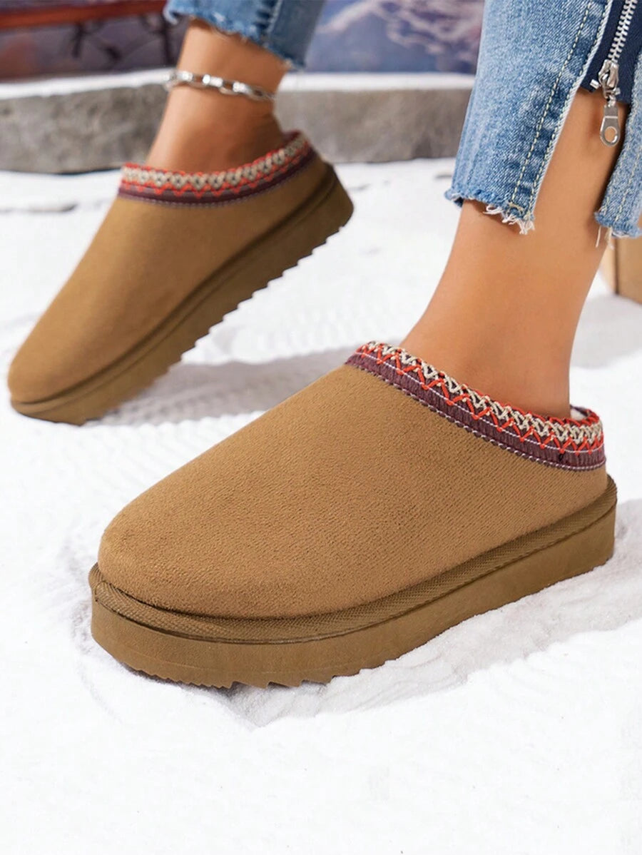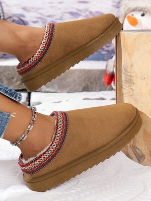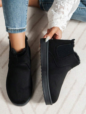 بوت برقبة قصيرة حديثة للشتاء، بتصميم رأس مستدير، أسفل ناعم ومبطن بالفراء، دافئة ومانعة للانزلاق، مناسبة للأنشطة الخارجية، بوت ثلج مريحة للنساء