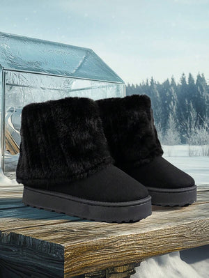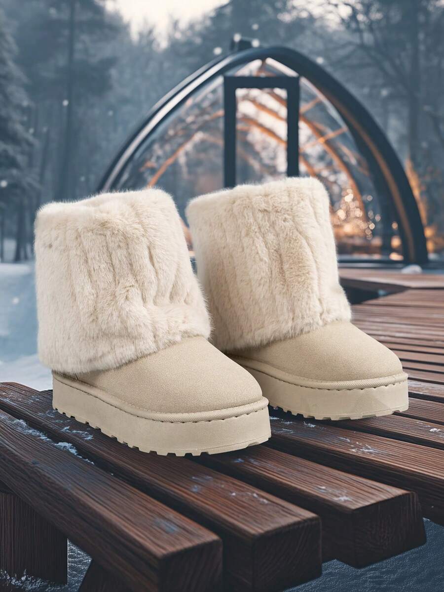 بوت ثلج نسائي موديل 2025 ، بنعل سميك وكعب متوسط مريح ، بطانة حرارية ، كاجوال ، غير قابل للانزلاق ، بطول الكاحل ، فرو ، سهل الارتداء ، عالي الجودة ، مقاسات كبيرة