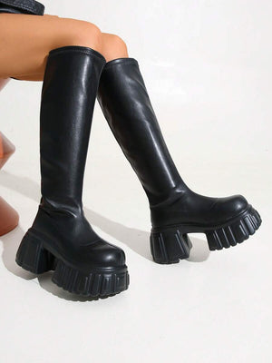 بوت فارسية ذات كعب عالي بأصابع مدببة وكسرات عشوائية غير متماثلة، لون المشمش، موسم الخريف/الشتاء 2025، بوت موضة للنساء تناسب الفساتين والشورتات، باللون الأسود