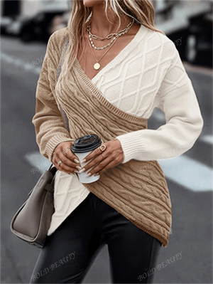 كنزة صوفية صوفية بياقة طاقم وأكمام طويلة، لون أحادي مع رقعات، تصميم بسيط وحبل مجدول، مناسبة للموسم الخريفي والشتوي