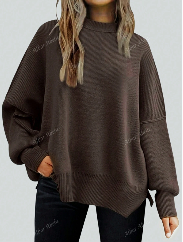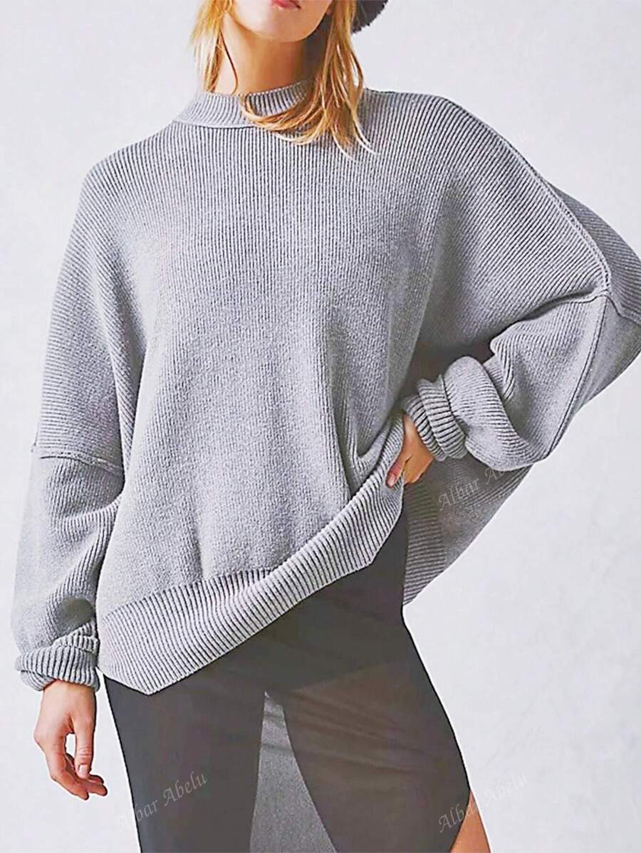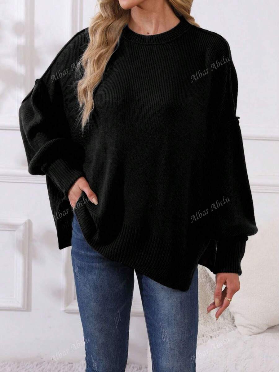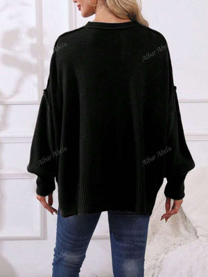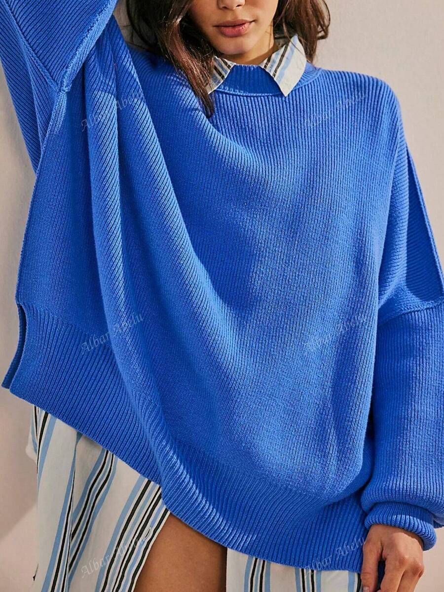كنزة صوفية صوفية فضفاضة بياقة طاقم وأكمام منسدلة للنساء ذوات الحجم الكبير، خريف/شتاء