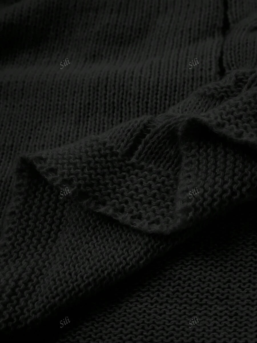 كنزة صوفية قطيفة كبيرة الحجم بتصميم رخو لون سادة ذات رقبة عالية للشتاء