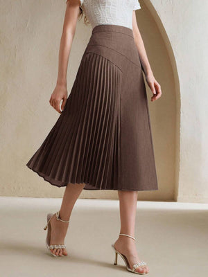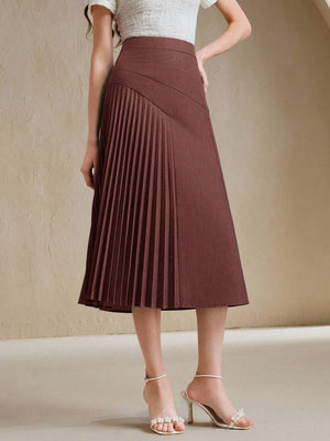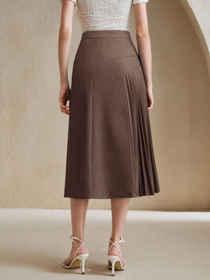 Anewsta تنورة نسائية للعمل في الخريف بتصميم مبسط مطوي