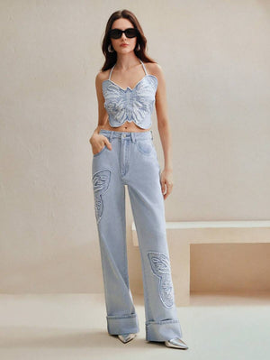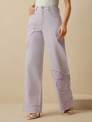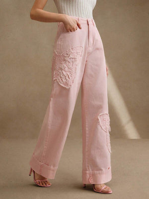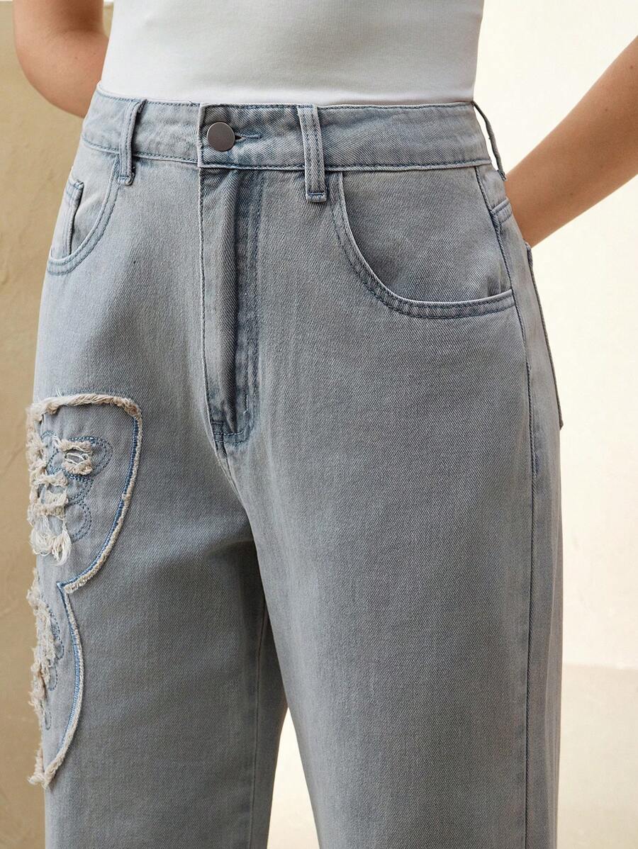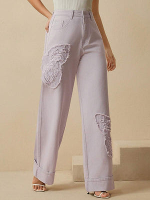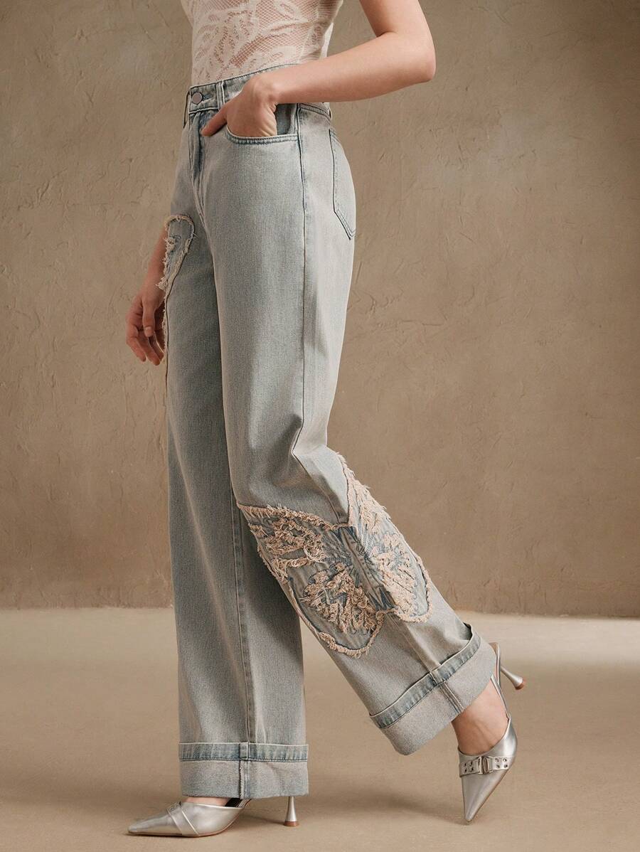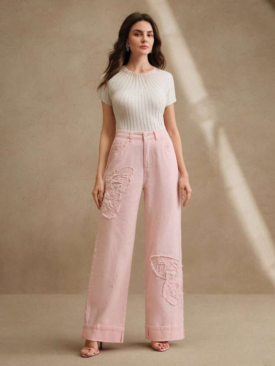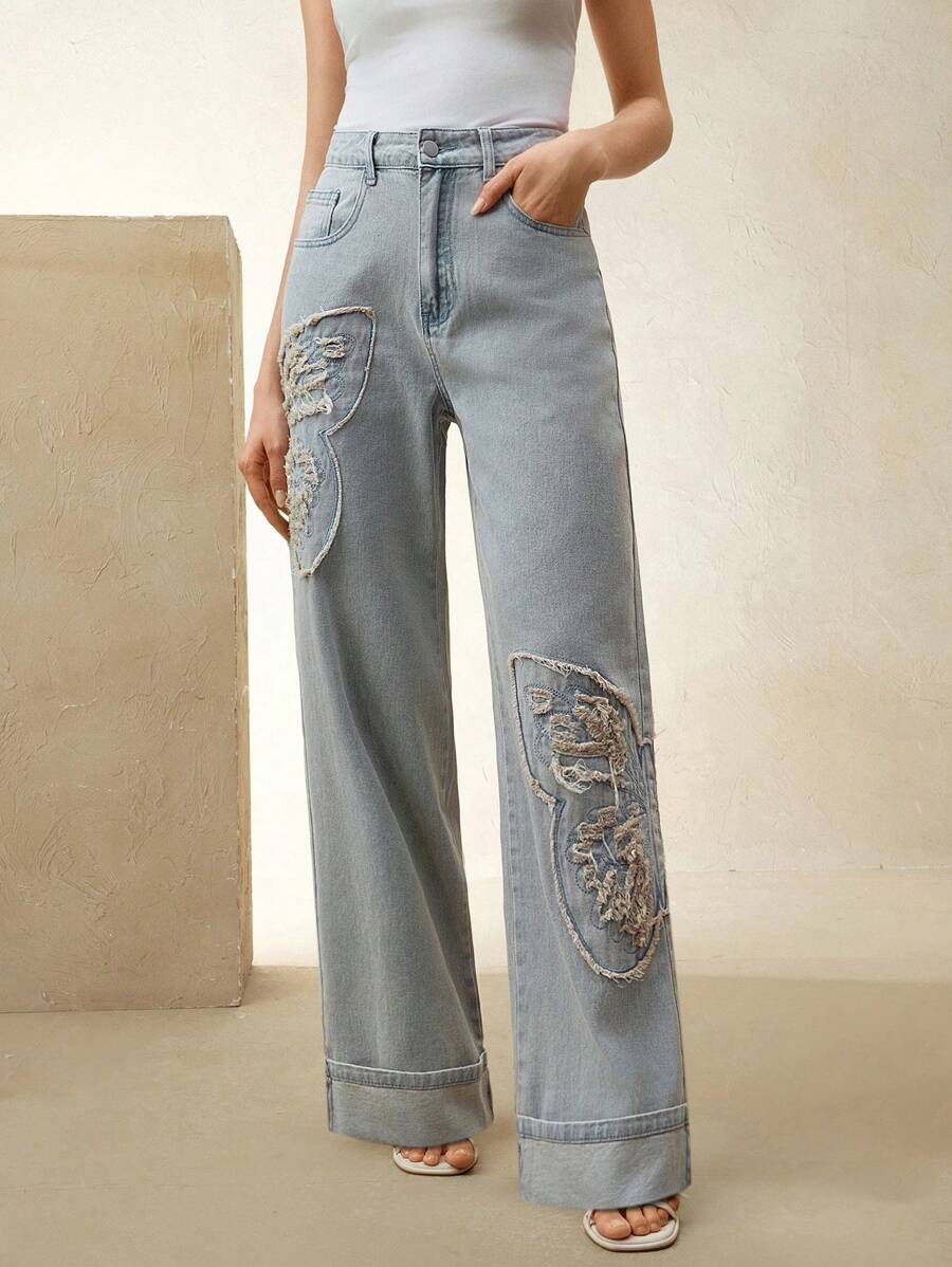 Anewsta سراويل جينز مطرزة بشكل عصري قصة مستقيمة للنساء