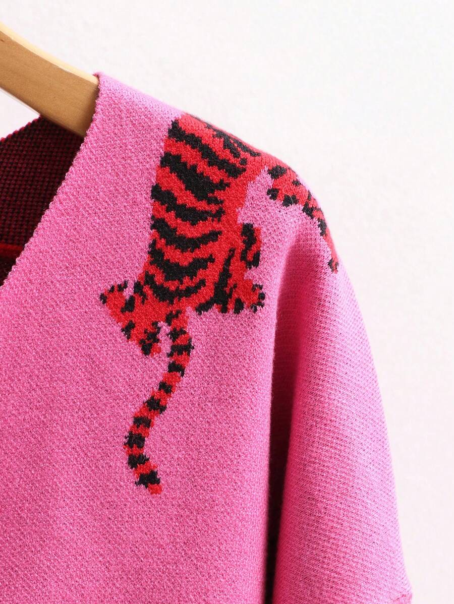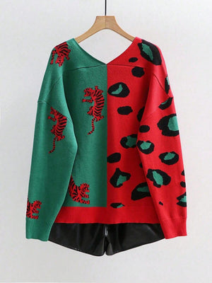 Chiquease كارديجان كبير الحجم فائق المقاس بطبعة نمر وفهد متباينة