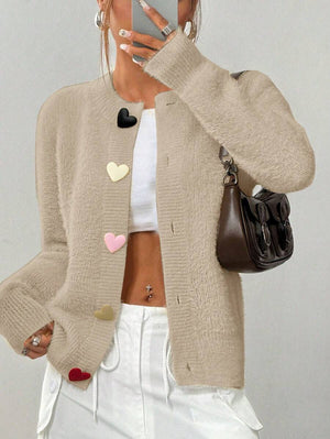 Flirla كارديجان سيدات كاجوال ذات أزرار شكل قلب ملونة، للخريف/الشتاء ، بأكمام طويلة