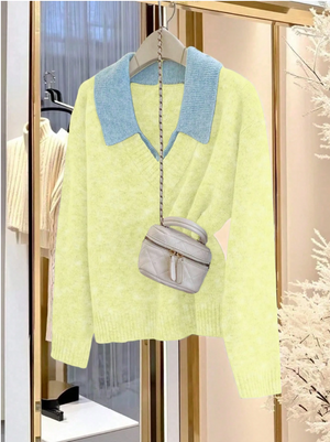 Franclia كنزة صوفية ، بأكمام طويلة بياقة على شكل حرف V