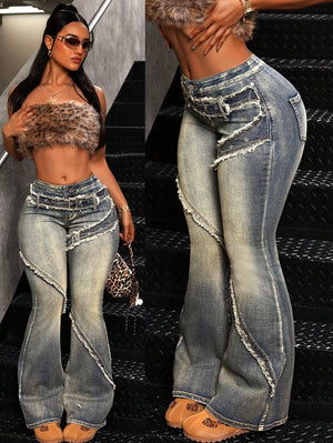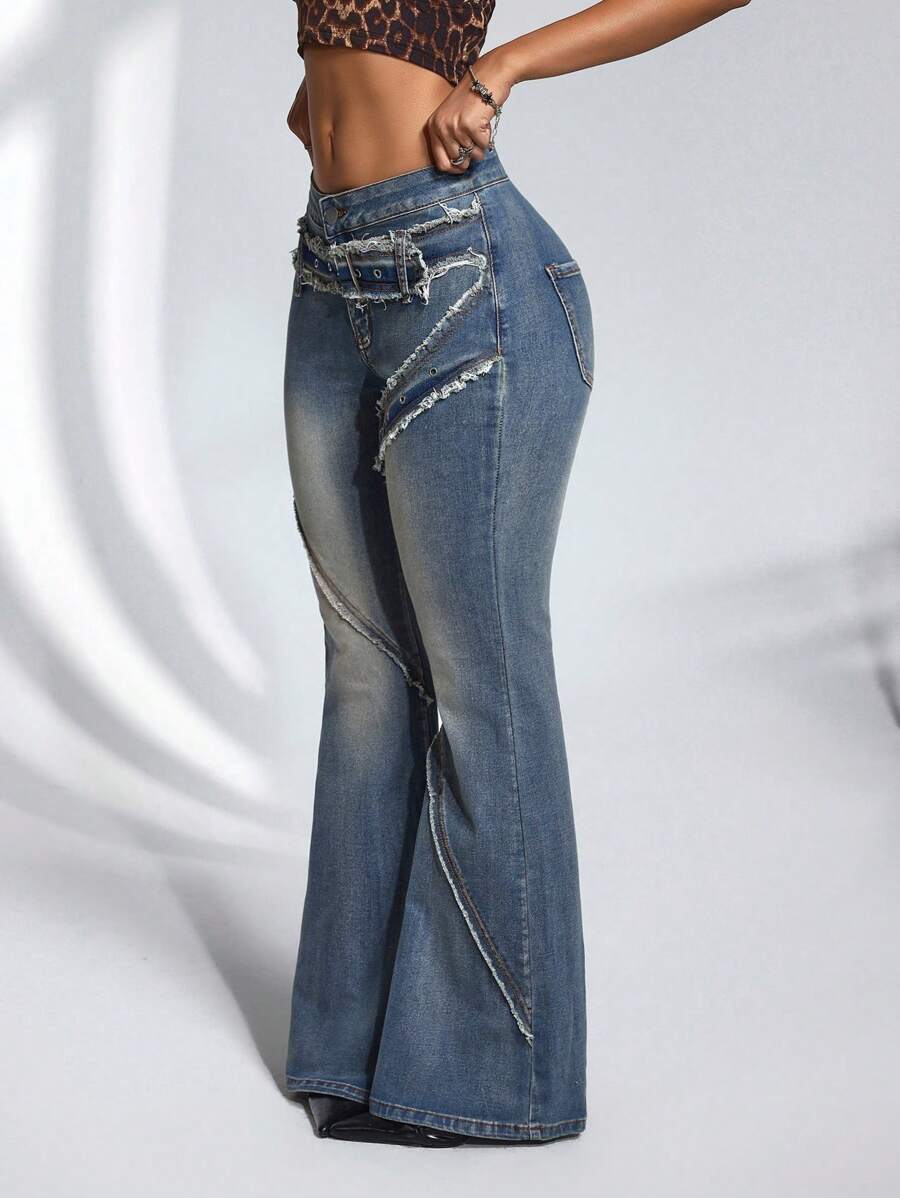ICON جينز نسائي كاجوال مغسول ضيق بقصة واسعة من الأسفل بطراز رجعي